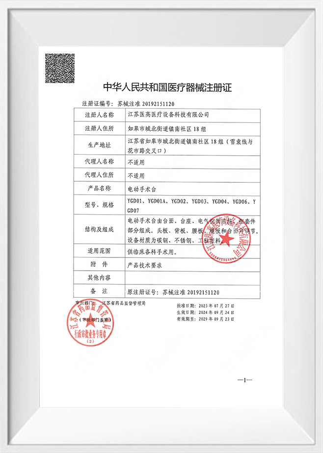Mar fhiontar a ritheadh ISO 9001, ISO 13485, ISO 14001, ISO 45001 , agus deimhnithe córais bhainistíochta eile, measann Jiangsu Yigao Co Teicneolaíocht Trealamh Leighis, Teo. cáilíocht an táirge mar fhuil na beatha. Comhlíonann ár táblaí oibriúcháin go docht caighdeáin CE , rud a chiallaíonn ní hamháin go gcomhlíonann siad ceanglais sábháilteachta, sláinte agus comhshaoil mhargadh na hEorpa ach go léiríonn siad freisin an leibhéal tosaigh idirnáisiúnta i ndearadh agus i ndéantúsaíocht táirgí.