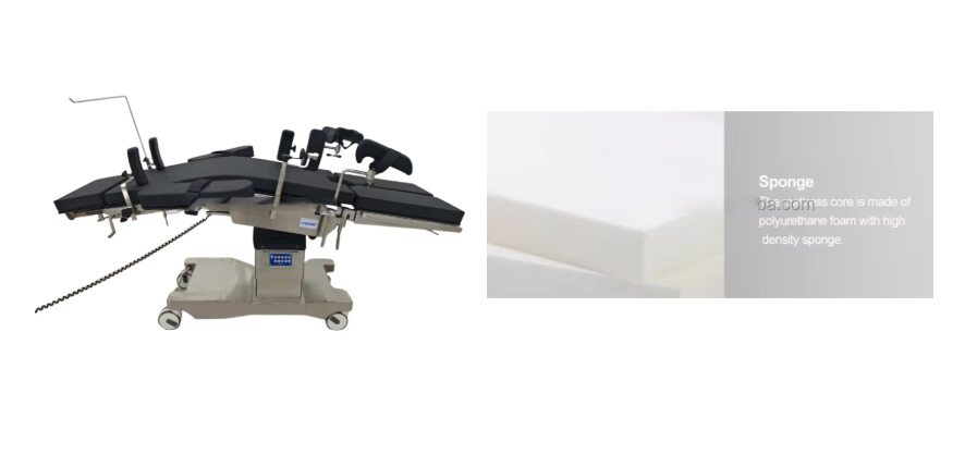 Tá an tábla roinnte ina cheithre chuid: ceann, cúl (lena n-áirítear droichead waist), páirteanna cromáin agus cos; tá an deasc déanta as ábhar ilchodach ard-neart le tarchur X-gha; is féidir é a úsáid le lámh C chun pictiúir a ghlacadh.