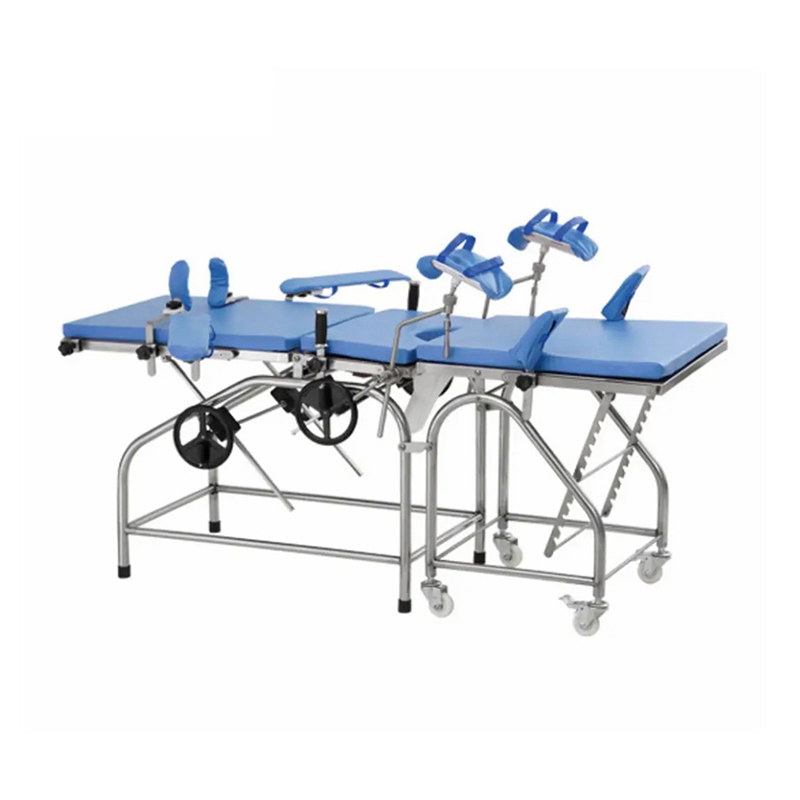Déantar an leaba seachadta cnáimhseach ilfheidhmeach seo a innealtóireacht go speisialta chun freastal ar scrúduithe cliniciúla, diagnóisí, lialanna, agus seachadadh máithreacha i ranna cnáimhseachais agus gínéiceolaíochta. Déanta go hiomlán as cruach dhosmálta préimhe - a chinntíonn marthanacht, sláintíocht saor ó hassle, agus comhlíonadh na gcaighdeán sláinteachais chliniciúil - cuimsíonn sé cúlchlár, bord cromáin, bonn agus tábla cúnta, le meicníocht tarchurtha raca láimhe-rialaithe atá éasca le húsáid a cheadaíonn fillte neamhspleách suas agus síos an chúlchláir agus an bhoird chromáin le haghaidh suíomh beacht othar le linn nósanna imeachta. Tá an tábla cúnta, arna choigeartú trí mheicníocht fráma ratchet mín le haghaidh fillte suas agus síos gan stró, feistithe le casters le haghaidh soghluaisteachta éasca, rud a fhágann gur réiteach iontaofa é an leaba cnáimhseach láimhe seo atá éasca le feidhmiú do chlinicí gínéiceolaíocha agus ospidéil. Deartha chun éifeachtúlacht foirne leighis agus compord na n-othar a chothromú, tacaíonn an tábla scrúdaithe & seachadta gínéiceolaíochta seo le haistrithe gan uaim idir scrúduithe, lialanna, agus breith leanaí, ag seasamh amach mar rogha phraiticiúil d'áiseanna cúram sláinte a lorgaíonn trealamh cnáimhseach atá cost-éifeachtach agus ilúsáideach.
