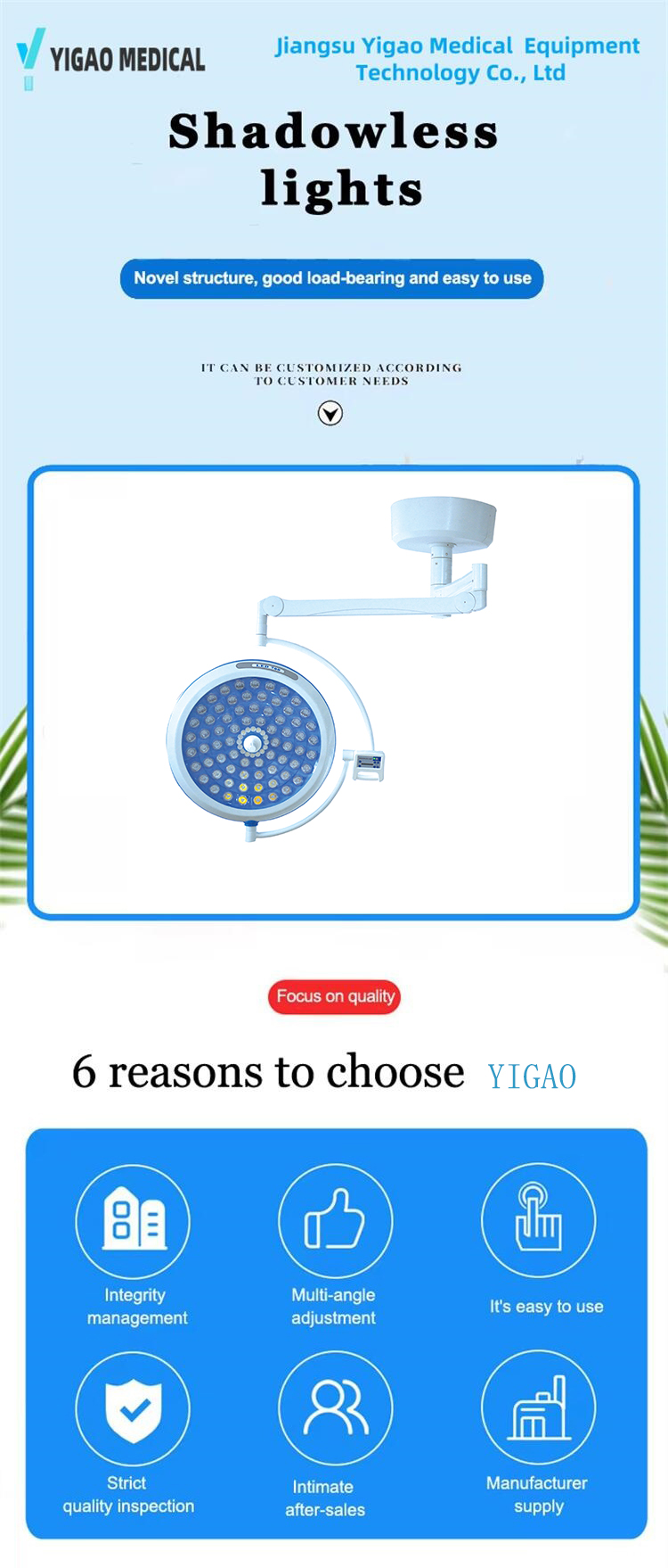 Is monarcha gairmiúil muid ag díriú ar thaighde agus forbairt, táirgeadh, díolachán agus seirbhís trealaimh leighis. I measc ár bpríomhtháirgí tá táblaí oibriúcháin, leapacha seachadta, leapacha ospidéil, etc., agus táimid tiomanta do riachtanais éagsúla institiúidí leighis nua-aimseartha a chomhlíonadh.